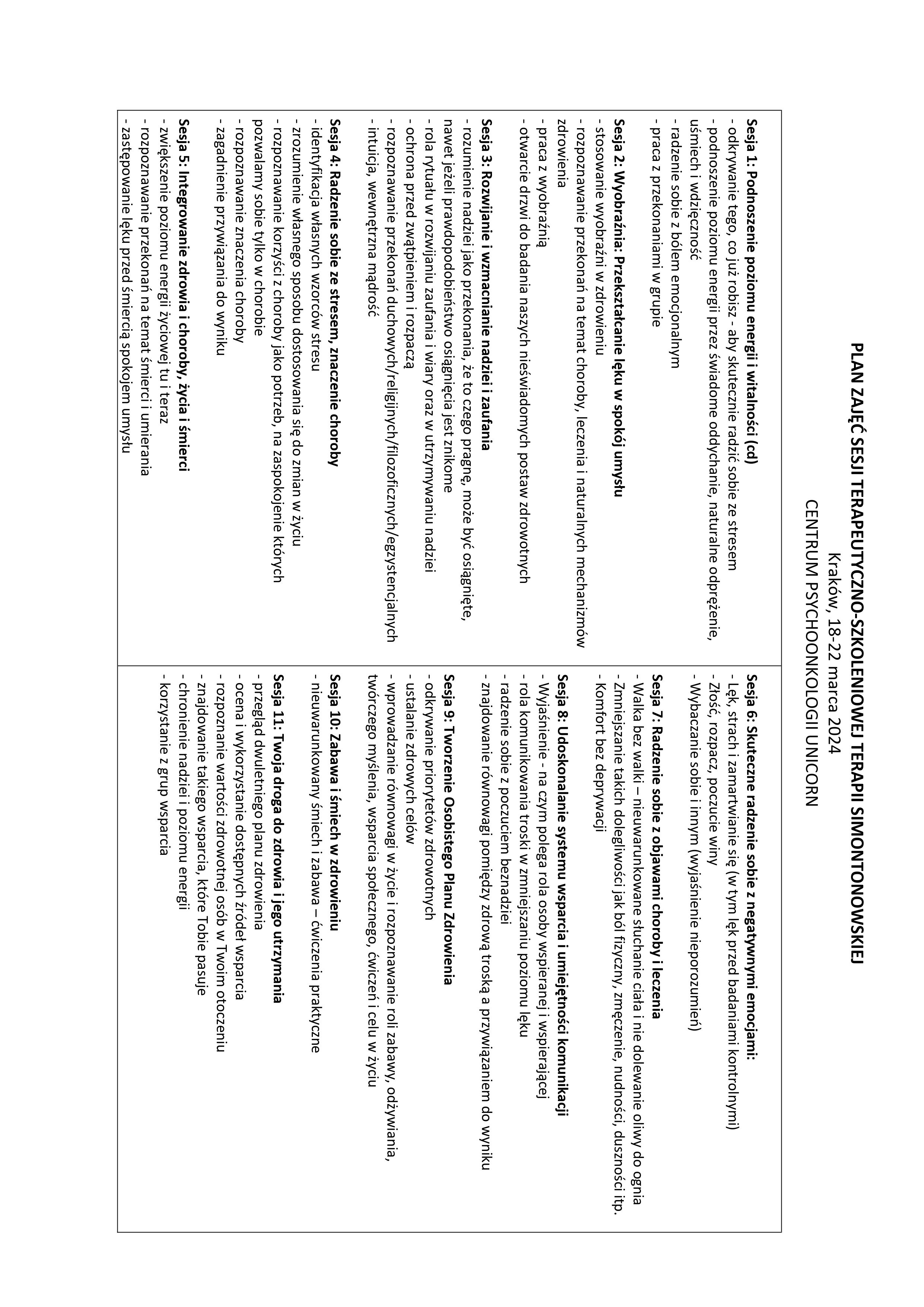 Miejsce: Centrum Psychoonkologii UNICORN, ul. Zielony Dół 4, 30-228 Kraków