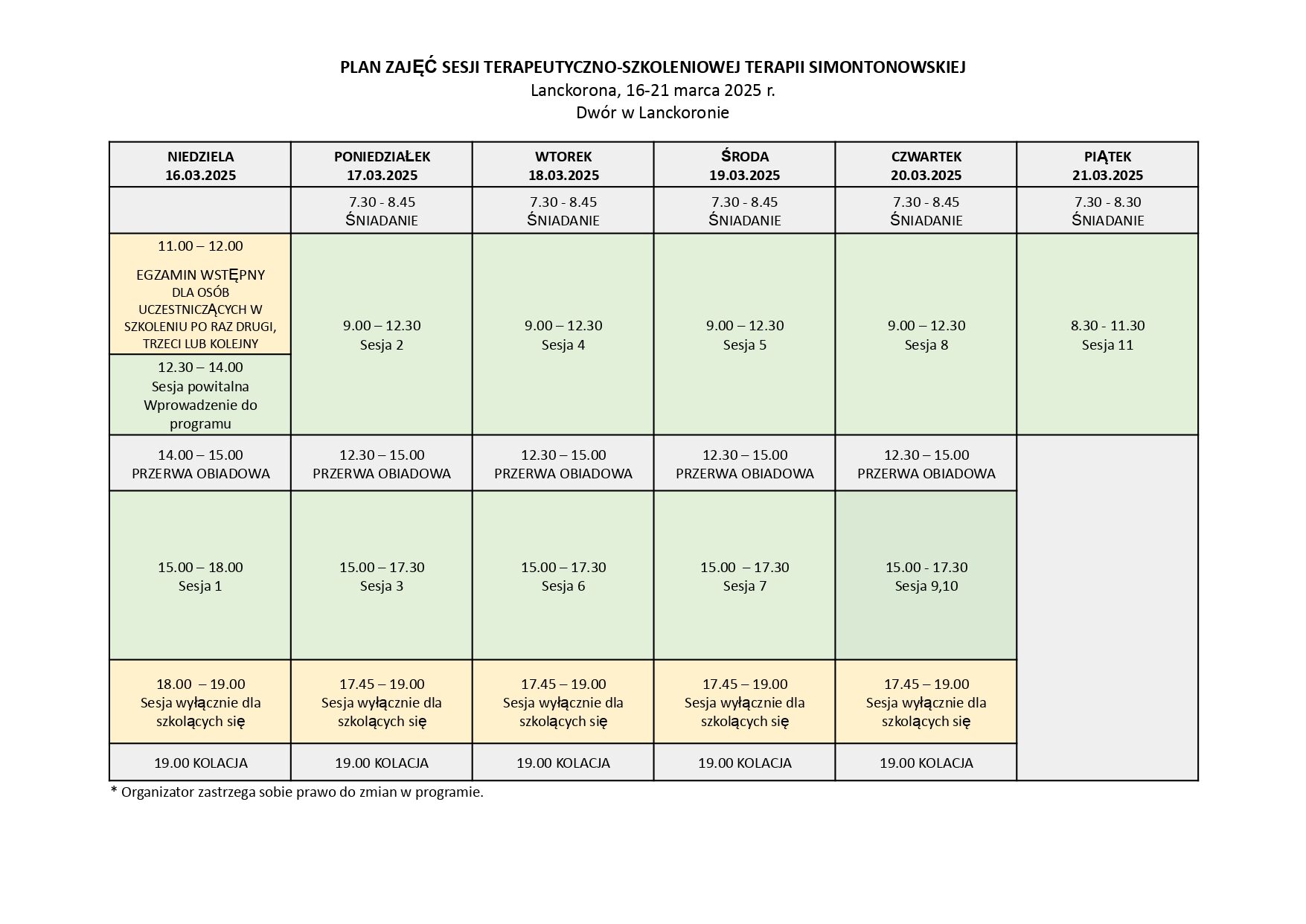 Zajęcia odbywać się będą w terminie od 16 – 21 marca 2025 roku, w nietuzinkowym miejscu, jakim jest Dwór w Lanckoronie.
